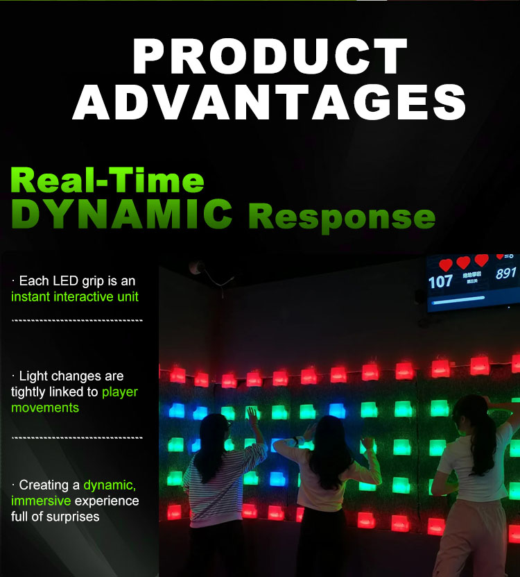 In this game, participants ascend through levels of escalating difficulty by stepping and reaching on interactive LED buttons that represent rock holds. Each play session challenges players’ agility, coordination, and strategic thinking, while offering both cooperative team play and competitive modes suited for friends, colleagues, and group events.
