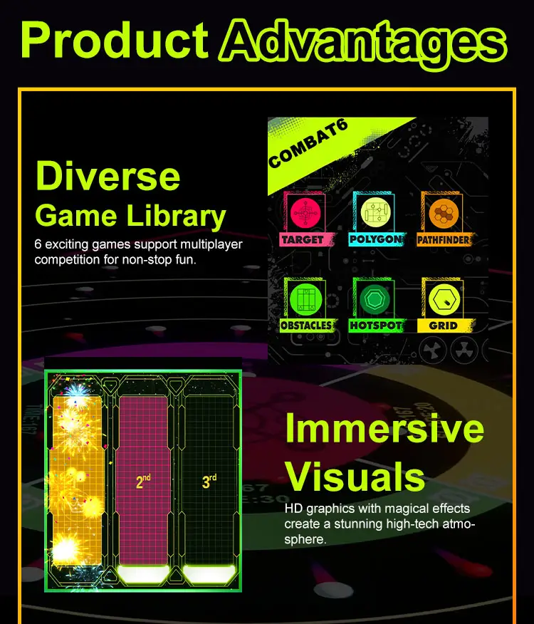 • 🏀 Sports Training Facilities: Enhance agility, coordination, and teamwork drills through reaction-based challenges.
