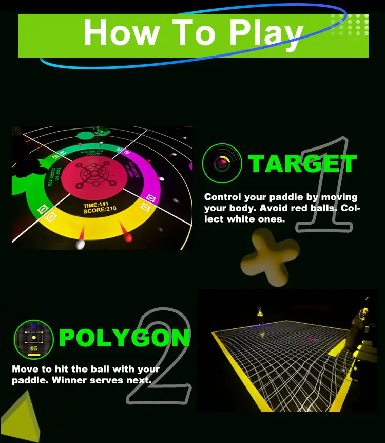• 🧩 Corporate Team-Building Centers: Foster communication and cooperation with collaborative floor projection games.